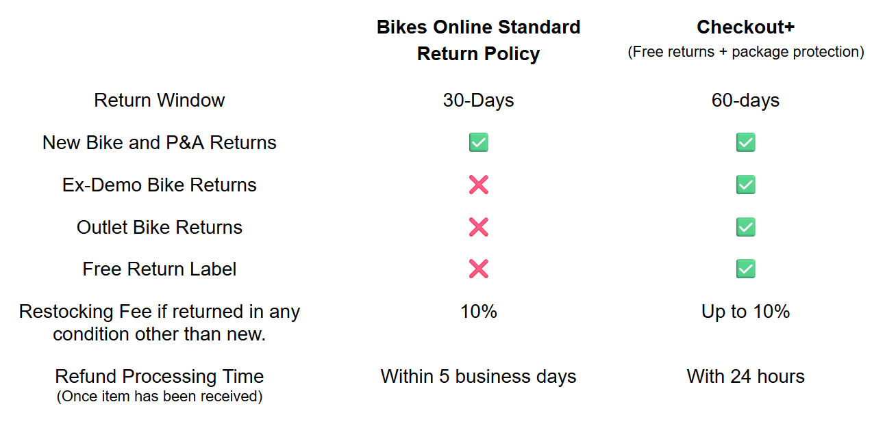 Ex-Demo Bike Returns | ❌ | ✅ |